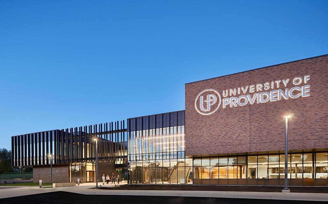 The University of Providence has continued its ongoing transformation with the opening of the school’s new University Center. The new, LEED (Leadership in Energy and Environmental Design) certified Center, is a significant step toward providing the programmatic spaces needed to support the University’s expansion goals and fulfill the next phase of the campus-wide master plan completed in 2016. As the primary education provider for the Providence St. Joseph Health System, the institution is expanding quickly to meet educational and workforce needs. Designed as the “front door” to campus, the Center houses a wide range of student services and common space including the campus welcome center, student services office, administration offices, an IT center, classrooms, distance learning studios, and the new Trinitas Art Gallery.